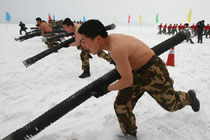 消防官兵雪中赤膊苦练