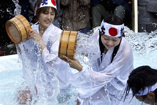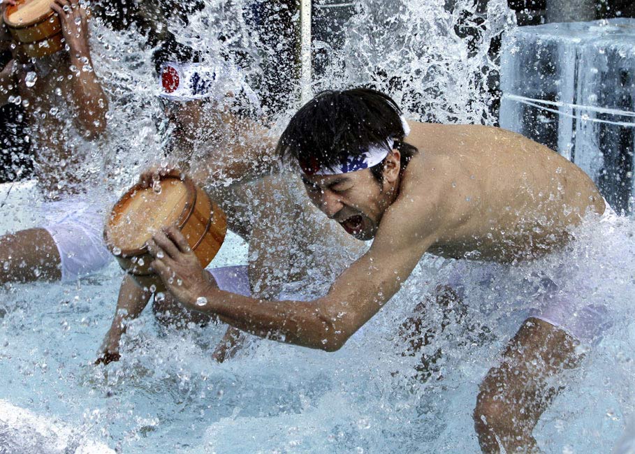 1月9日,日本东京,众多日本民众参加传统的净化仪式,他们用冷水浇身,祈祷身体和灵魂得到净化。