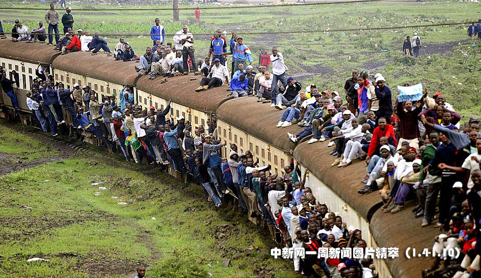 1月5日(周二),在肯尼亚内罗毕的马卡达拉车站,乘客们站在一列拥挤的通勤列车外部。由于小型巴士司机不满警方腐败举行了罢工,公共交通连续第二天处于瘫痪。图片来源:中国新闻网