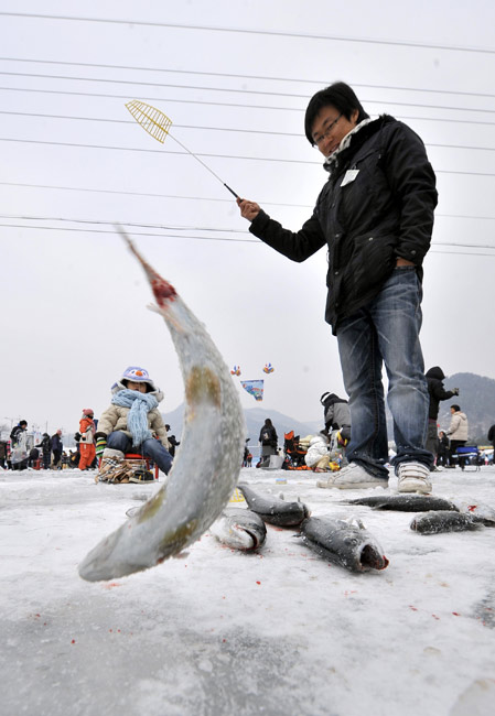 2010年1月9日,韩国华川郡,一年一度的华川山鳟鱼节当日举行。图片来源:中国新闻网