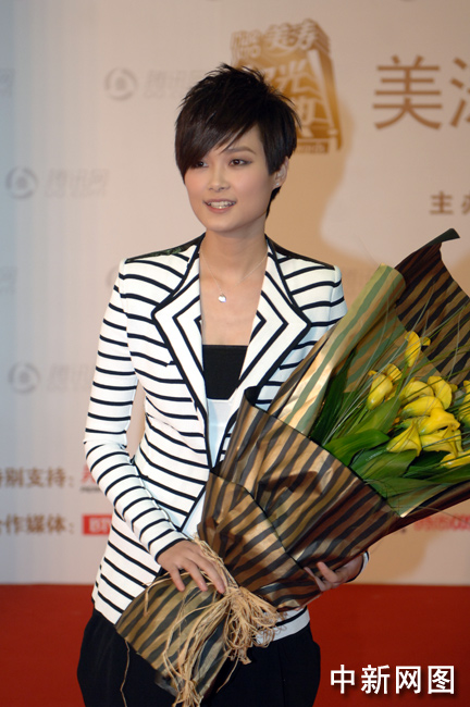 图为李宇春潇洒帅气亮相大典。中新网记者 金硕 摄