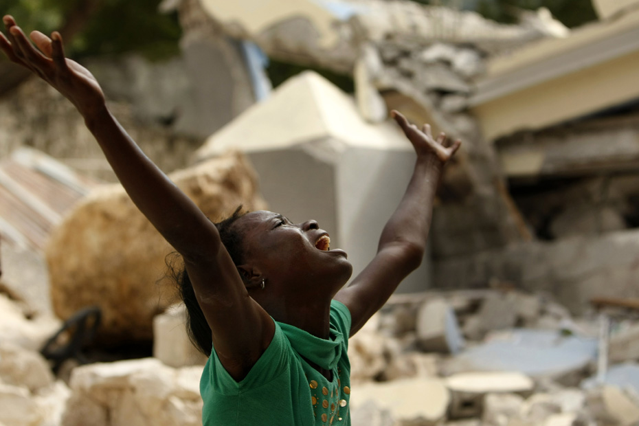 海地7级大地震后,街边一排排无名尸体已开始腐烂,在巨大的废墟下时不时的传出被压难民的呻吟声,几乎夷为平地的首都太子港沦为露天难民营。图片来源:中国新闻网