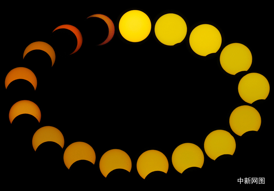 图为北京观测日偏食全过程拼图。中新网记者 金硕 摄