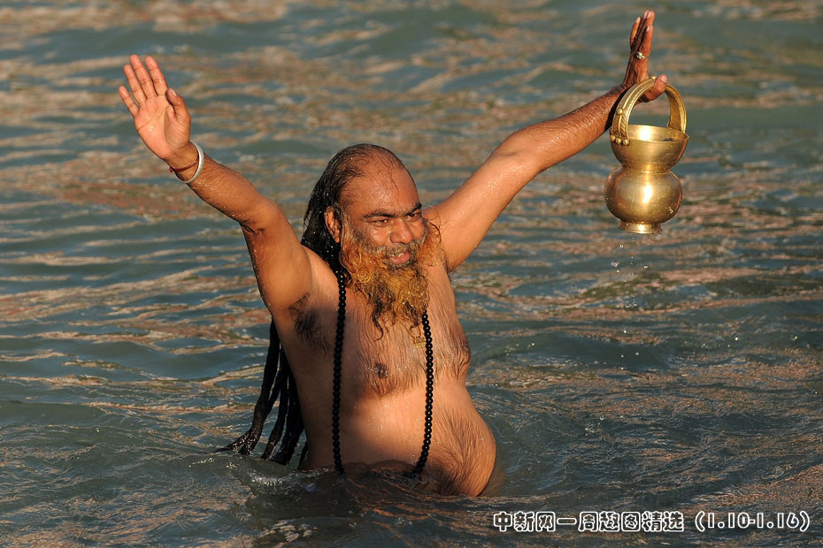 1月14日,数千名印度教信徒前往恒河参加世界上最大的宗教集会大壶节,并在印度圣河——恒河进行了沐浴仪式。图片来源:中国新闻网>>点击观看详细内容