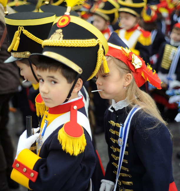 当地时间1月20日,西班牙迎来传统的圣塞巴斯蒂安节。对圣塞巴斯蒂安人来说,这是一年中最隆重的节日。图为儿童穿着士兵传统服装进行游行。
