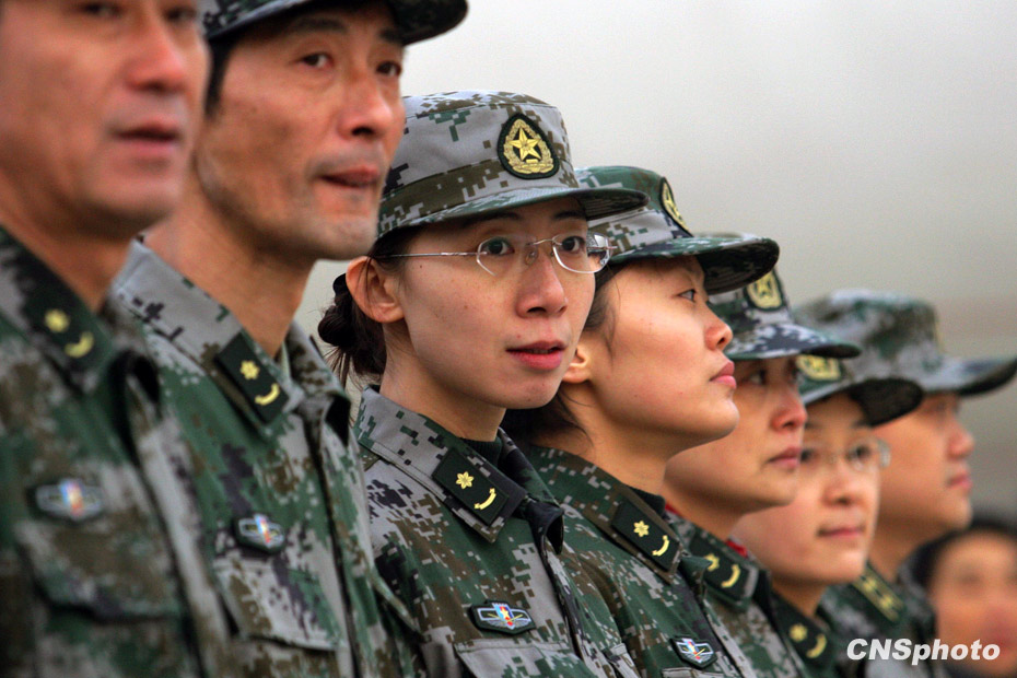 中国人民解放军医护人员和管理人员组成的中国医疗防疫救护队一行40人乘坐军运包机离开北京,启程前往海地进行人道主义救援任务。中新社发 刘震 摄