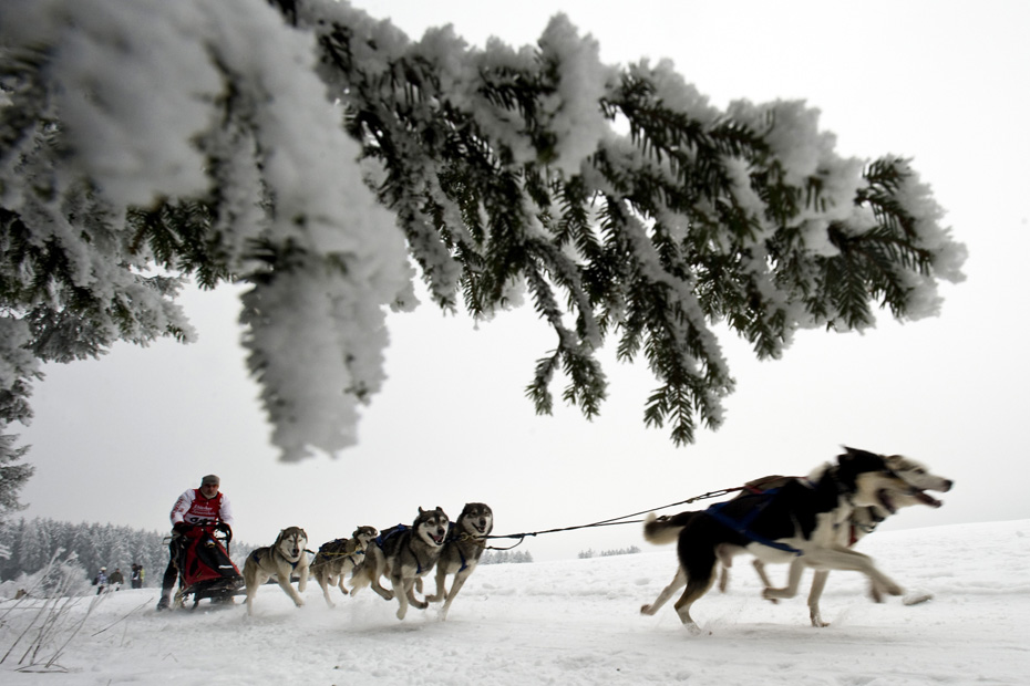 1月24日,德国中部举办了一场盛大的狗拉雪橇大赛,约有54支队伍超过200条雪撬犬参加了大赛。图片来源:中国新闻网