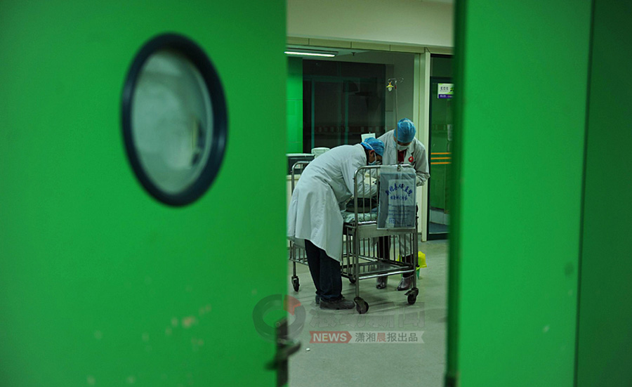 1月18日下午6点32分,在小振和去世后1小时内,眼库工作人员到湖南省儿童医院病房,在对着小小的遗体三鞠躬后,取出了眼角膜。潇湘晨报 记者 杨抒怀 摄