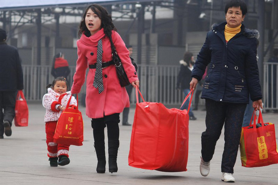 一年一度的春运今日起正式开始。2010年的春运从1月30日起至3月10日,为期40天,其中节前15天,节后25天。据权威预测,今年春运客运量料超25亿人次。图为1月30日,长沙火车站,出行的旅客携带着大小包裹匆忙赶路。郭立亮 摄