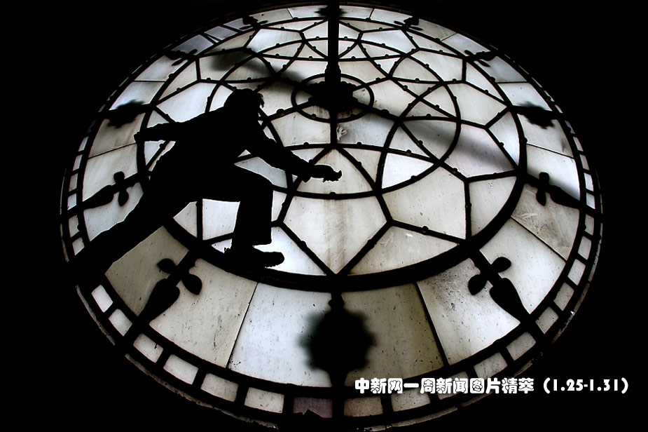 1月28日(周四),在英格兰曼彻斯特市政厅里,钟表专家对钟表“Great Abel” 进行一年一度的大清理。图片来源:中国新闻网