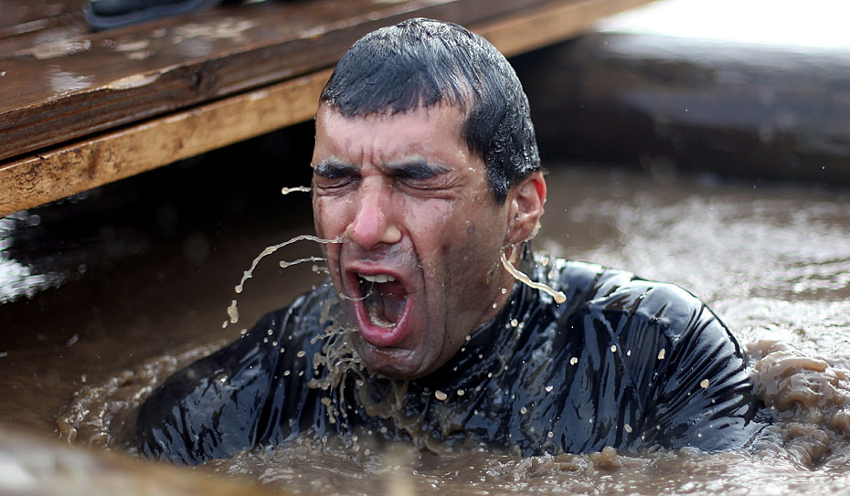 1月31日,在英国小镇Perton举行了一场硬汉挑战赛。图片来源:中国新闻网