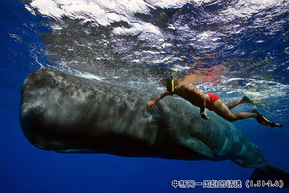 潜水员安德鲁-阿穆尔能够和这些巨大的抹香鲸进行交流,因此,人称其为“鲸语者”(Whale Whisperer,这一说法源于美剧Ghost Whisperer,中译为“鬼语者”)。图片来源:中国新闻网>>点击观看详细内容