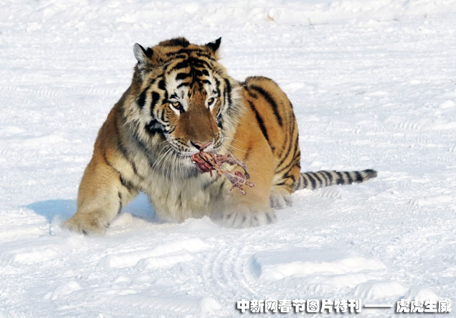 1月13日,黑龙江东北虎林园,老虎在雪地中嬉戏追逐。(王少华 张书俭 摄) 图片来源:中国新闻网