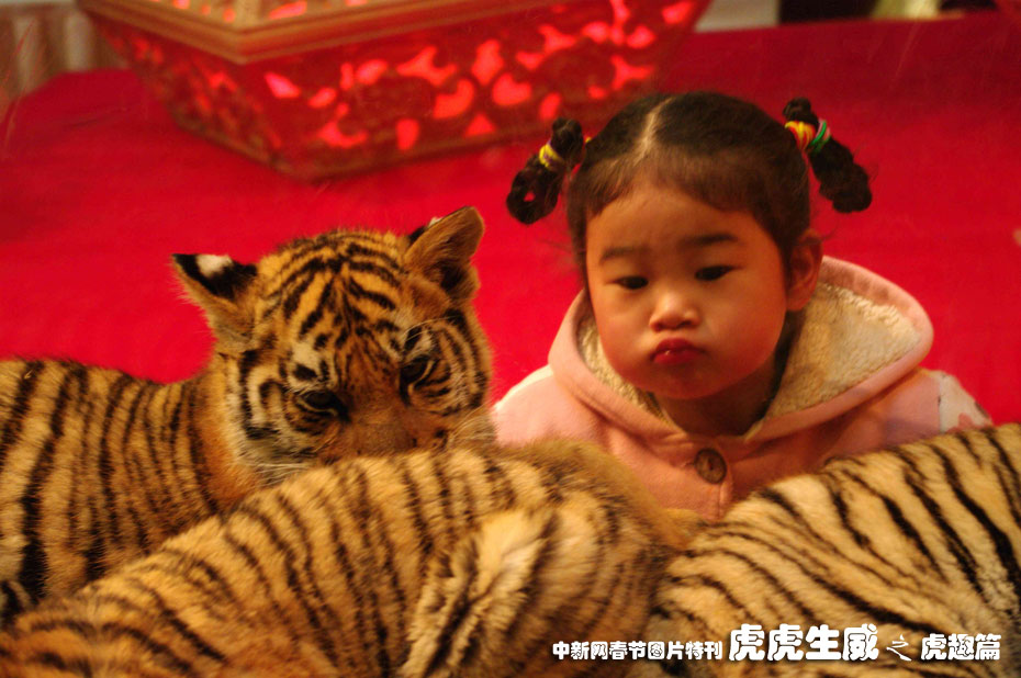 1月30日,虎年将至,重庆某商厦开展野生动物保护法宣传,“请”来几只活泼可爱的小老虎与市民近距离接触,人见人爱。中新社发 金城 摄