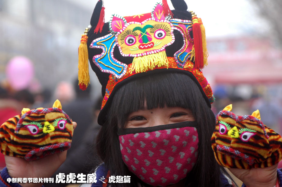 12月1日,山东郯城县马头镇集市上,虎头帽、虎头鞋俏销。鲁南地区民间有“虎年到送鞋帽”的传统习俗。农历虎年将至,郯城县群众纷纷购买这种用花线、绒布和棉花等材料纯手工缝制的鞋帽送给亲朋孩童。中新社发 房德华 摄