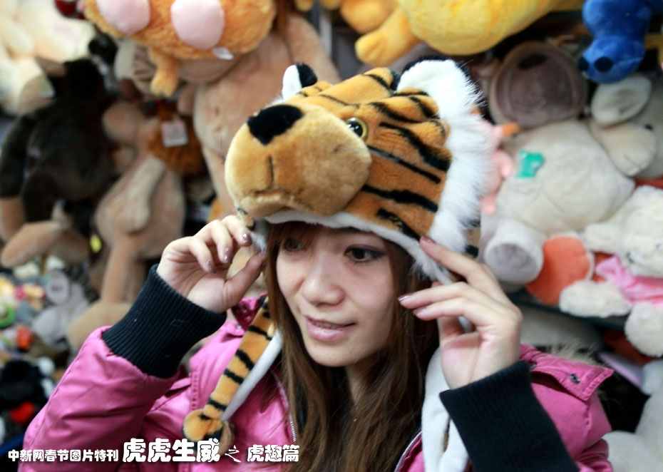 虎年将至,北京商场中造型各异的毛绒老虎玩具及饰品热卖。中新社发 老罗 摄