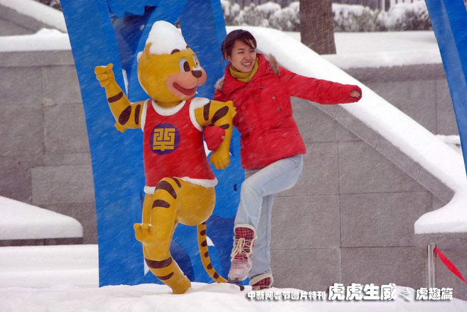 1月3日,北京降下新年第二场雪,在西单文化广场,人们纷纷拿出相机拍照,留下白雪世界的倩影和新年的祝福。中新社发 九州 摄