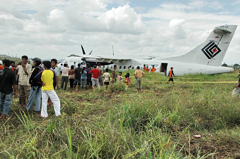 印尼当地时间2月11日,印尼一架客机成功迫降婆罗洲岛的一片稻田,机上47名乘客和5名机组人员除两人腿部骨折外,其他人均安然无恙。图片来源:中国新闻网