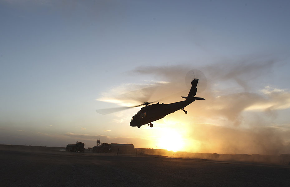 2月12日,驻阿富汗美军在当地军人的配合下,乘直升机向塔利班武装盘踞的马拉赫市发动猛攻。据美军估计,目前约二千多名塔利班武装成员躲藏在马拉赫市。图片来源:中国新闻网