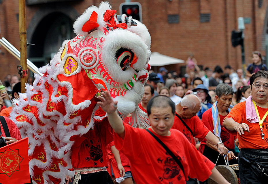 图为澳大利亚悉尼唐人街上华人社团舞狮庆新春。