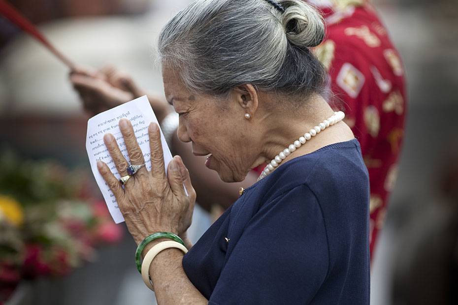 图为印尼民众在寺庙中祈福新年。
