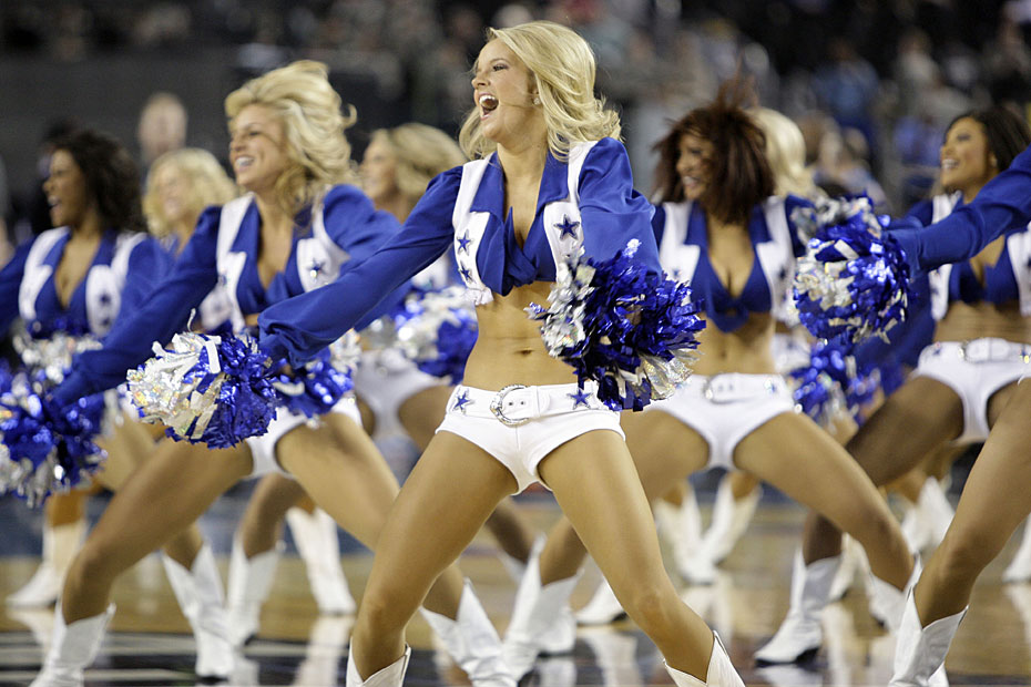 图为全明星赛休息时场上啦啦队劲歌热舞。