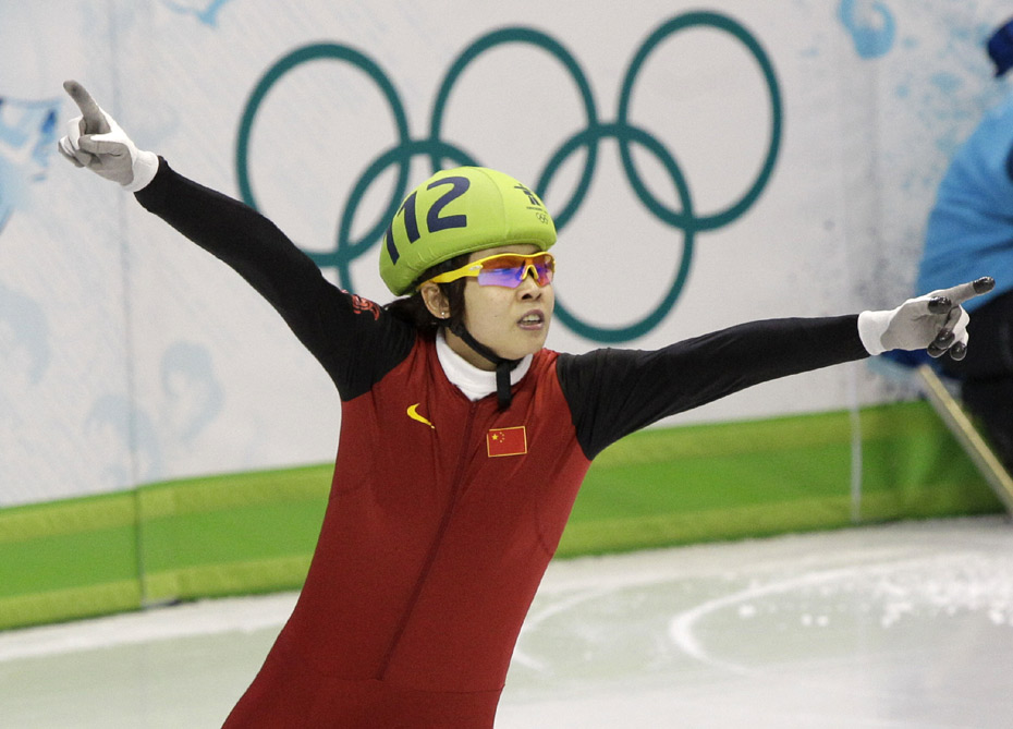 2010年温哥华冬奥会短道速滑女子500米决赛北京时间2月18日上午11时许举行,中国选手王濛获得冠军,为中国代表团再添一枚金牌。图片来源:中国新闻网