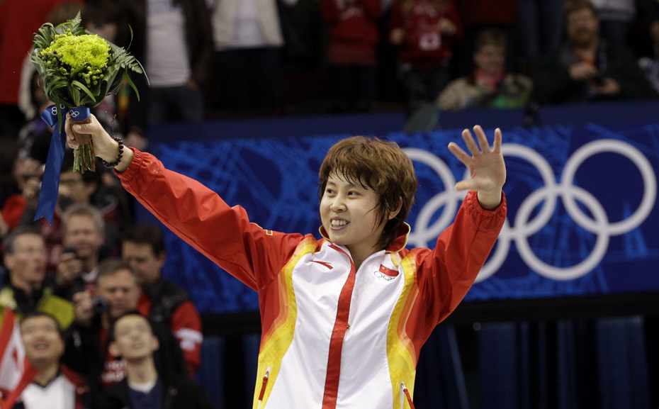 2010年温哥华冬奥会短道速滑女子500米决赛北京时间2月18日上午11时许举行,中国选手王濛获得冠军,为中国代表团再添一枚金牌。图片来源:中国新闻网