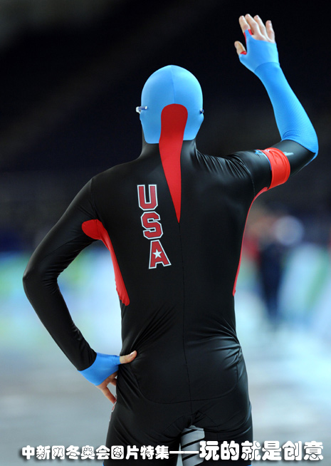 美国速滑运动员的搞怪造型。图片来源:中国新闻网