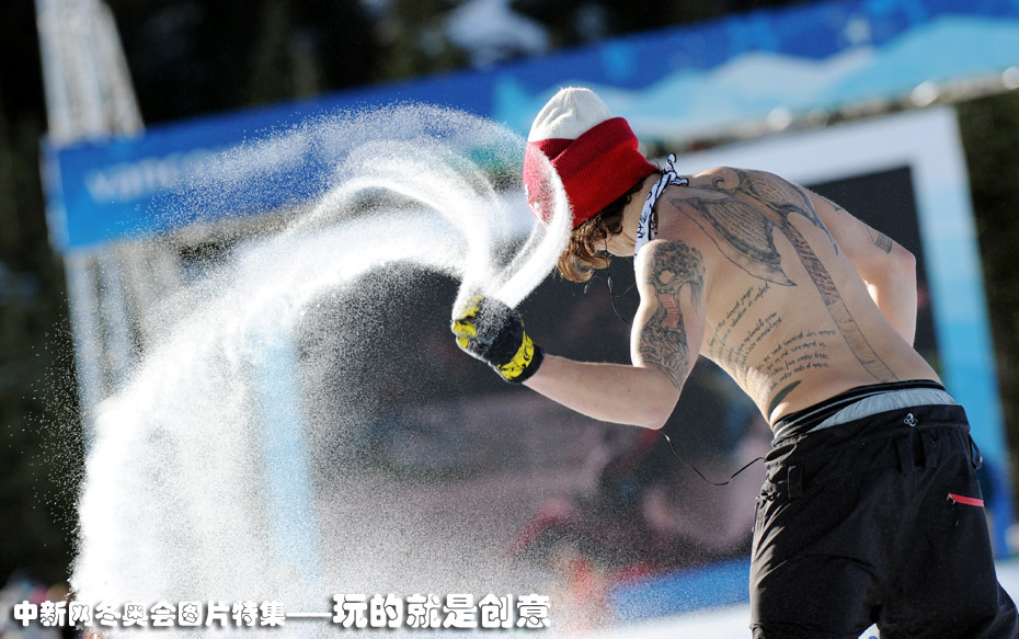 图为一位将上衣脱掉的热情观众。图片来源:中国新闻网