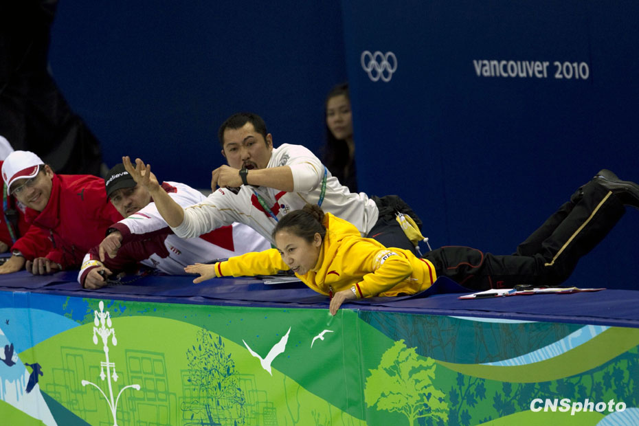图为中国队主教练李琰(右一)在场边为周洋加油。