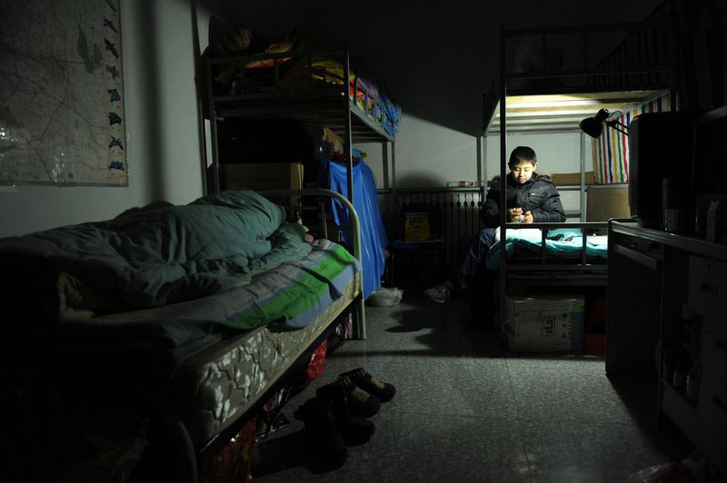 图为回到妈妈朋友帮忙的房间内,姥姥已经入睡,邵帅开着台灯整理着东西。朱嘉磊/CFP