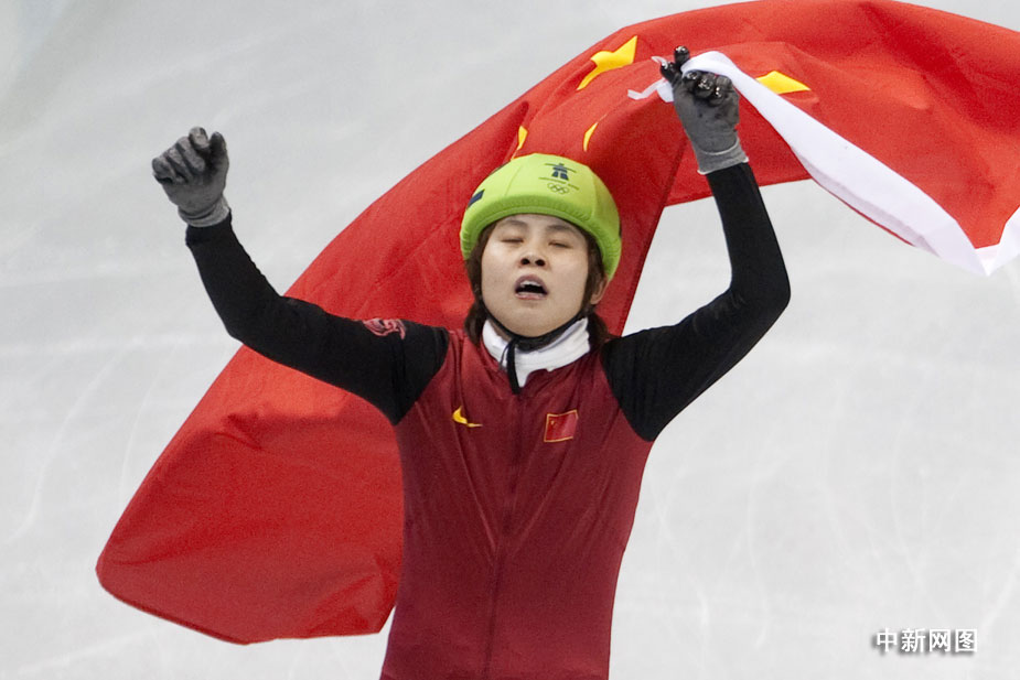 北京时间27日中午,中国选手王濛在2010年温哥华冬奥会短道速滑女子1000米的决赛中摘得金牌。图片来源:中国新闻网