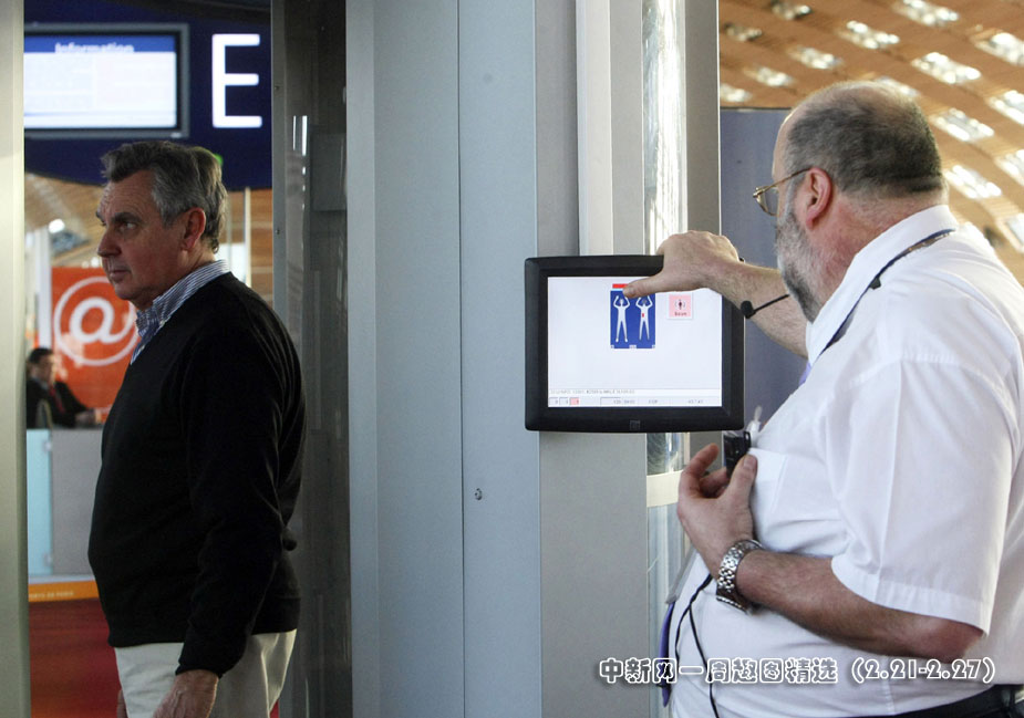 2月22日,一批新型安检设备人体扫描仪在法国各地机场“上岗”,重点检查去往美国的乘客。图片来源:中国新闻网>>点击观看详细内容