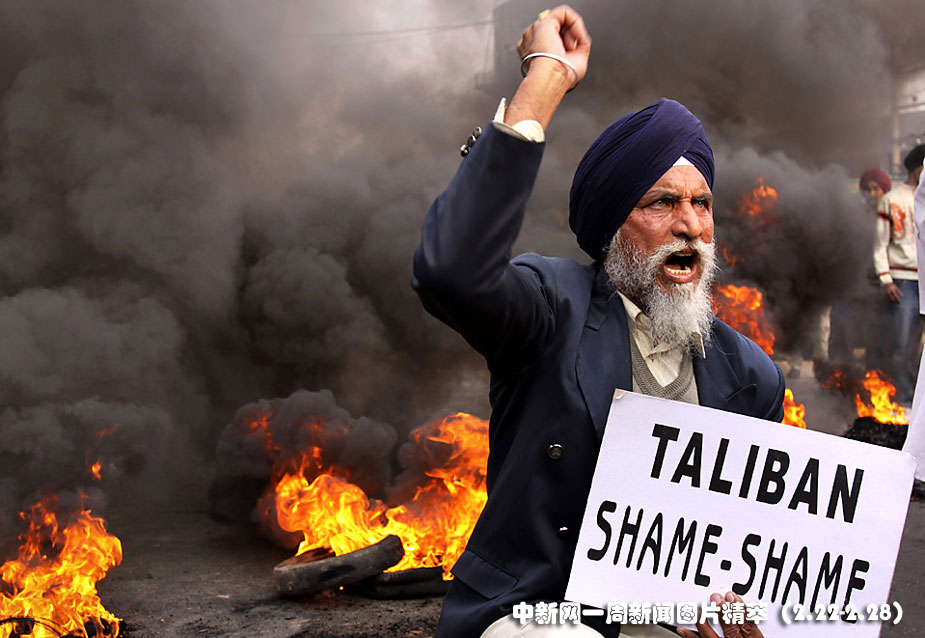 23日(周二),印度一些民众抗议塔利班在巴基斯坦地区的暴行。
