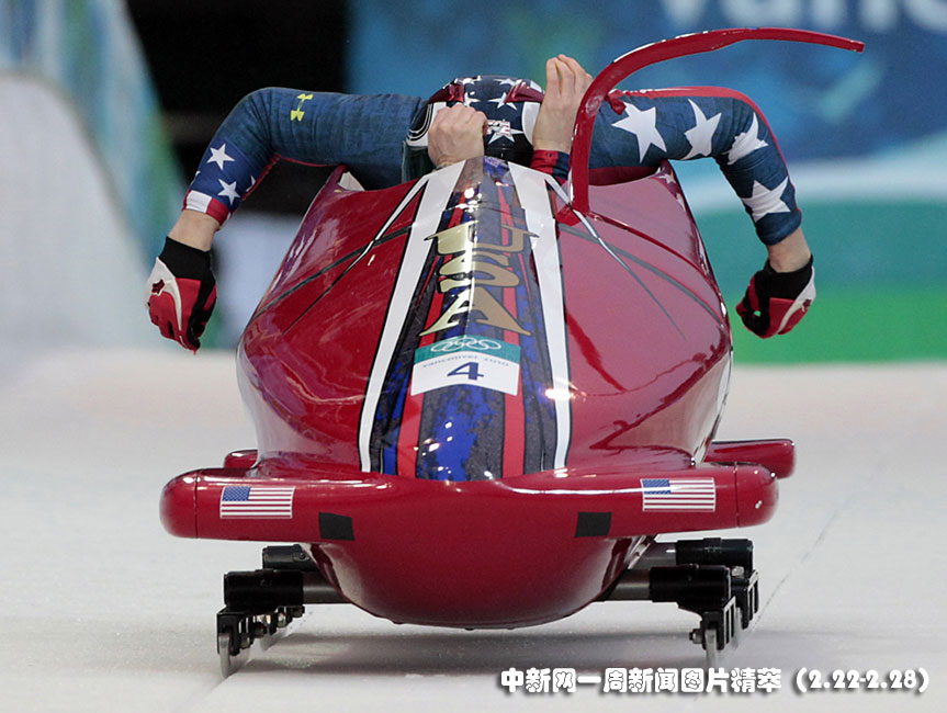 24日(周三),美国选手Shauna Rohbock和Michelle Rzepka在参加温哥华冬奥会的有舵雪橇比赛。