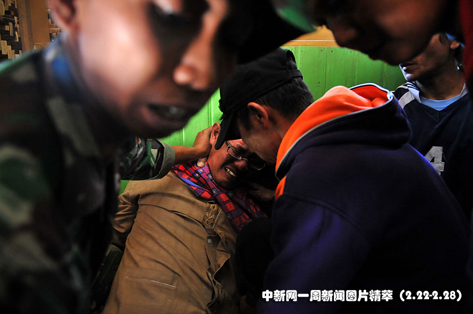 25日(周四),在印尼西爪哇,一名男子得知亲人丧生泥石流失声痛哭。