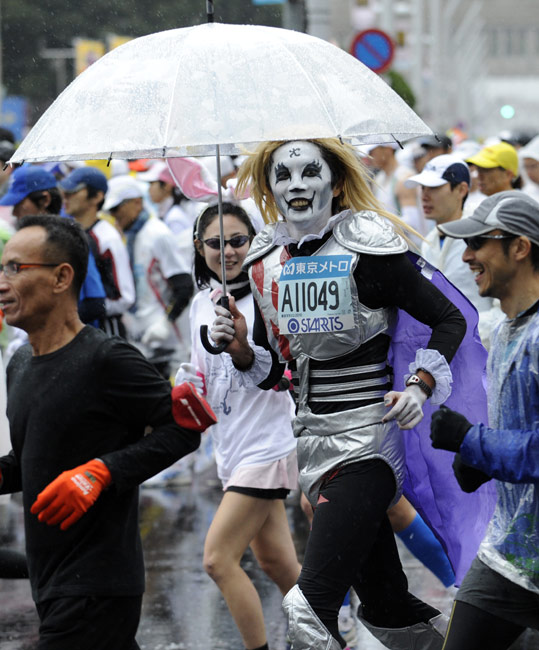 2月28日,日本东京马拉松赛举行,超过30000名爱好者参加了此次马拉松赛。很多参赛者的怪异服装成为了赛场上的一道风景。图片来源:中国新闻网