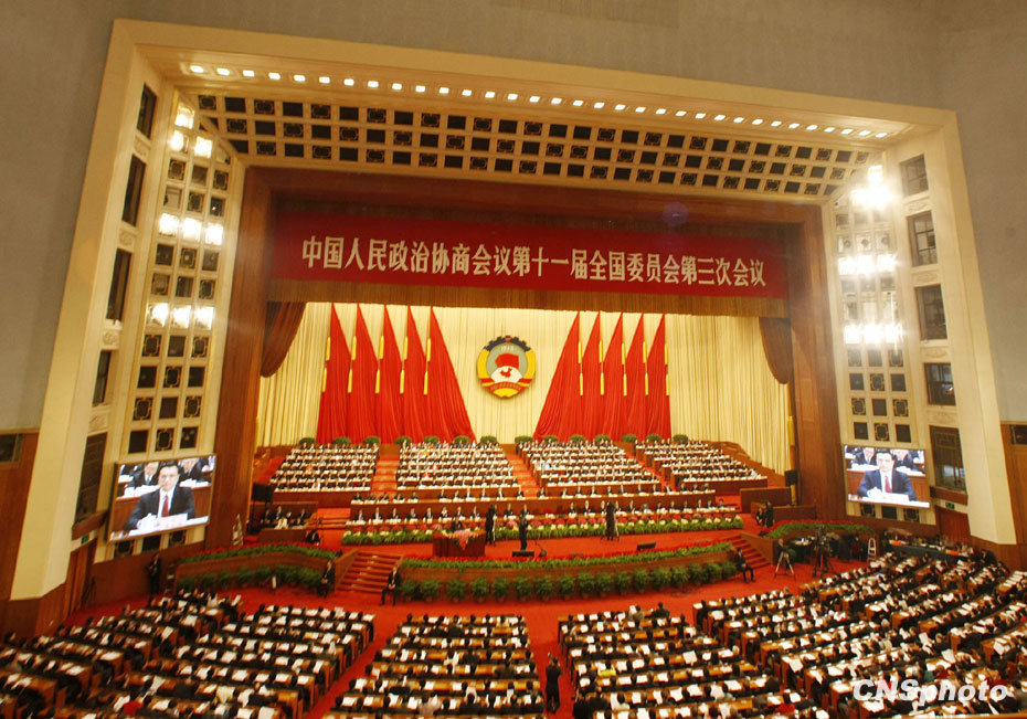 3月3日下午,中国政治生活中的年度盛会——全国政协十一届三次会议在北京人民大会堂隆重开幕。图片来源:中国新闻网
