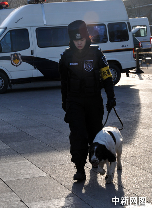 3月5日上午9时,十一届全国人大三次会议在北京隆重开幕。国务院总理温家宝作政府工作报告。图为图为人民大会堂外的安检处。中新网记者 吴歆 摄