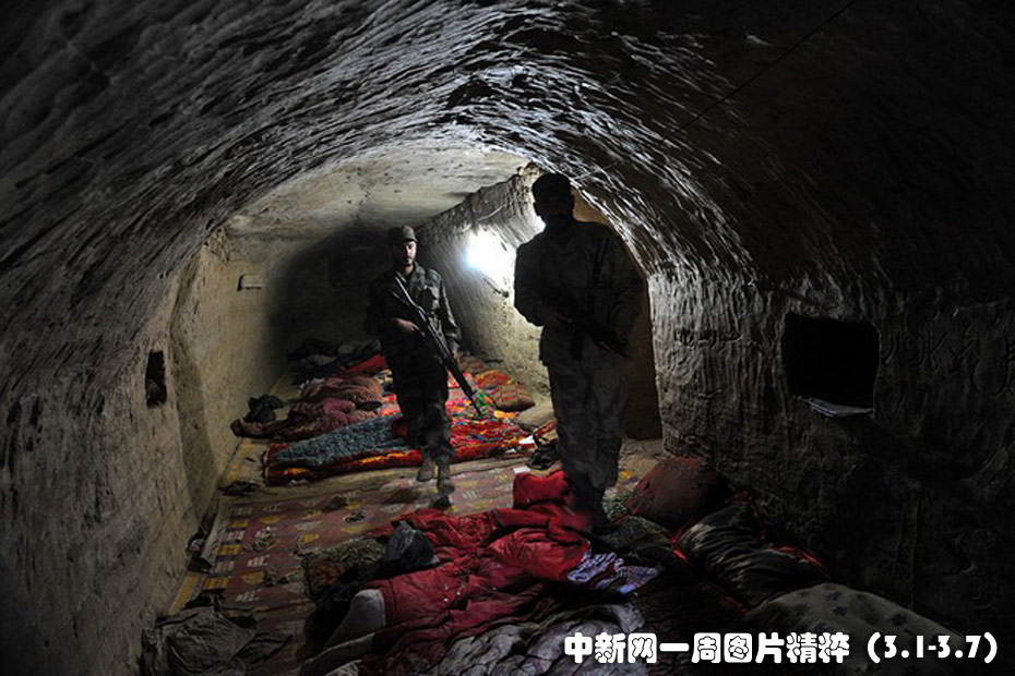 3月2日,巴基斯坦士兵离开达马多拉的一处洞穴,这里曾是塔利班的一个重要军事指挥部。巴基斯坦军方称,在击毙75名境内外恐怖分子后,他们夺取了塔利班-基地组织在靠近阿富汗边境的一处重要据点。图片来源:中国新闻网