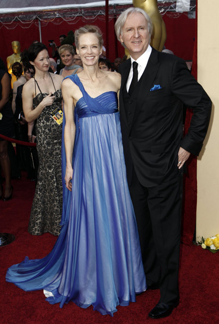 北京时间3月8日上午,第82届奥斯卡金像奖颁奖典礼在洛杉矶柯达剧院举行。众明星纷纷盛装走上红地毯。图为最佳导演候选人、影片《阿凡达》的导演詹姆斯·卡梅隆携妻子亮相红地毯。