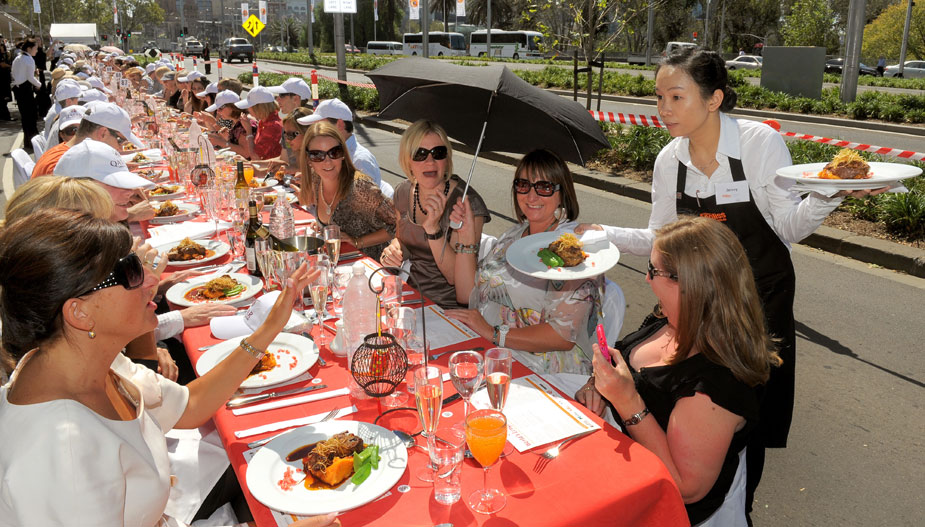 近日,澳大利亚墨尔本,人们在号称“世界上最长的午餐”活动中享受美味佳肴。图片来源:中国新闻网
