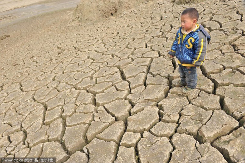 中国西南地区抗旱形势十分严峻,云南、贵州、广西、重庆、四川五省(区、市)局部出现严重干旱。截至3月16日,有2000多万人因旱饮水困难。图片来源:中国新闻网