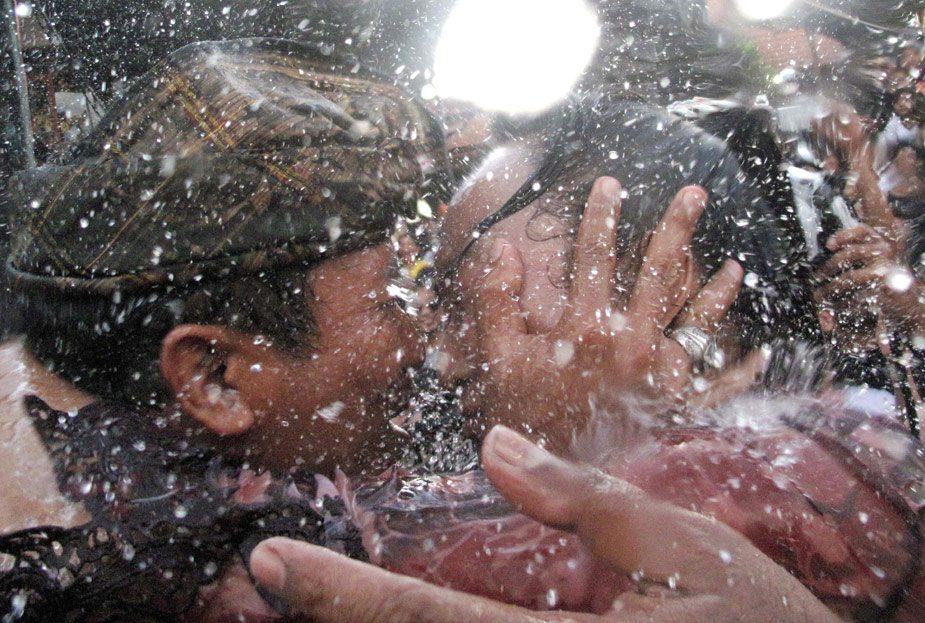 当地时间3月17日,印尼旅游胜地巴厘岛举行了传统的“接吻节”。图片来源:中国新闻网