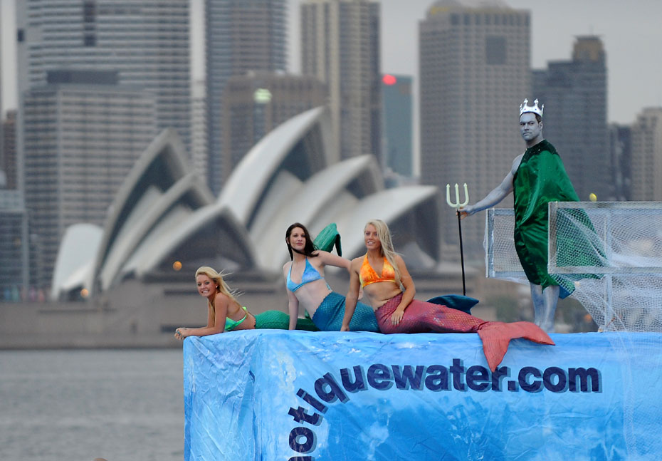 2010年3月22日,是第18个“世界水日”,今年联合国将“世界水日”的主题定为:保障清洁水源,创造健康世界,意在强调水资源的数量和质量都面临着威胁。本周也是第23个“中国水周”,宣传主题是“严格水资源管理,保障可持续发展”。目前,中国西南5省区正在遭遇一场百年难遇的大旱,而与此同时,16个省份约2.7亿人遭受沙尘侵扰。因此,这个世界水日的到来更加引发人们对水资源及节水话题的凝重思考和深度追问。图为3月22日,海洋生物学家打扮成美人鱼和海神模样坐在6米长的“冰山”号船上经过澳大利亚悉尼港口大桥附近水面,以纪念世界水日。