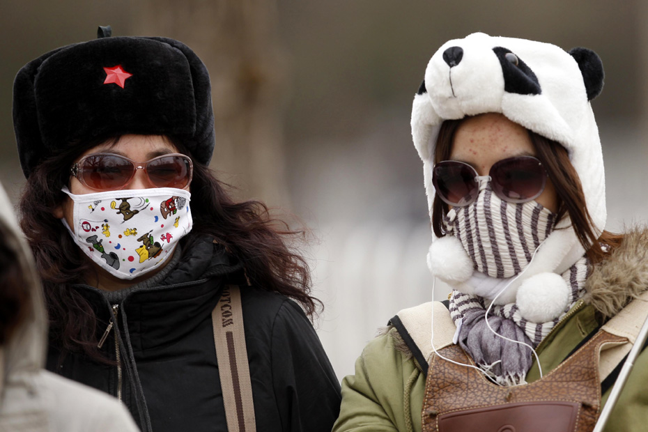 22日,北京遭遇今春第二场沙尘暴侵袭,街头行人“全副武装”应对。盛佳鹏 摄