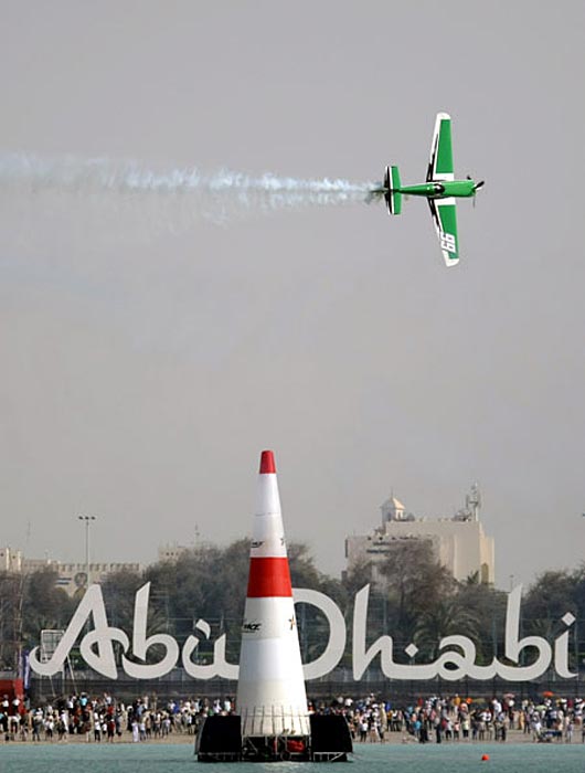 近日,红牛飞行系列赛世界锦标赛预选赛在阿拉伯联合酋长国阿布扎比举行。参加比赛飞行员不但要有高速的驾驶技术,还要有勇往直前的胆量。图片来源:中国新闻网