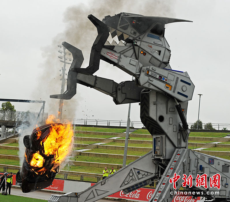 3月30日,一款重约27吨的机器怪兽在澳大利亚悉尼瞬间将一台汽车摧毁。据悉,该款机器怪兽是由30多个公司花了两年时间研究出来的。图片来源:中国新闻网