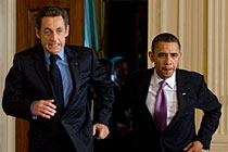 美法总统齐跑步见记者